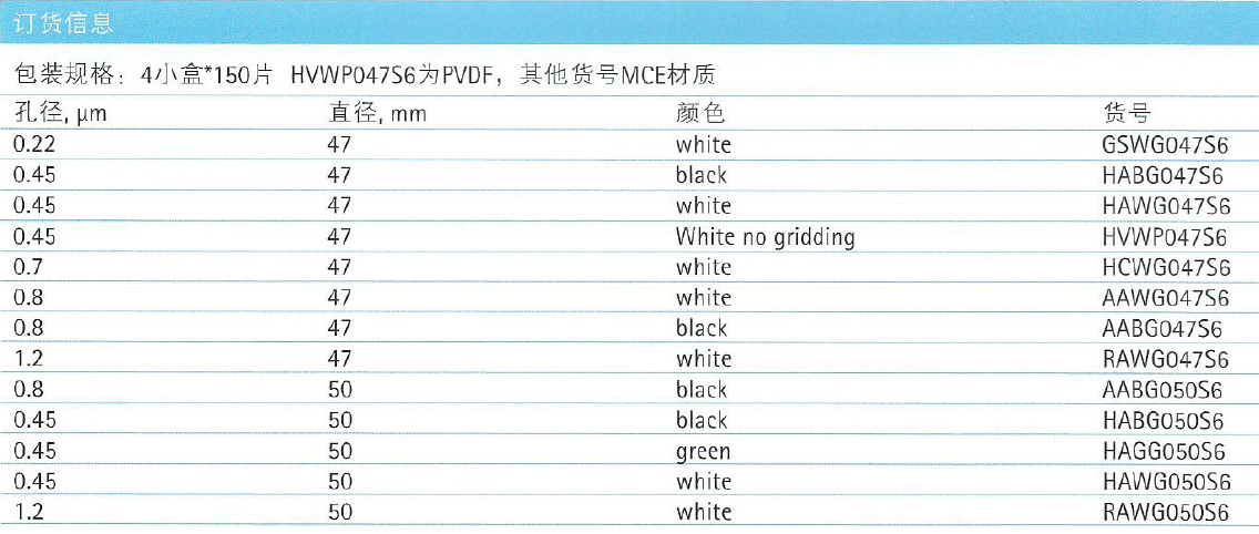 无菌单片过滤膜HAWG047S6 0.45微米孔径,47毫米直径无菌单片过滤膜 货号 HAWG047S6 600片/包
