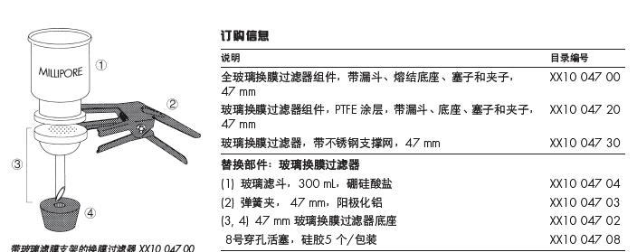 使用 XX10 047 00 对水进行细菌分析(使用 47mm 无菌表面滤膜)或对水中悬浮固体进行分析(使用 47mm 深层滤膜)